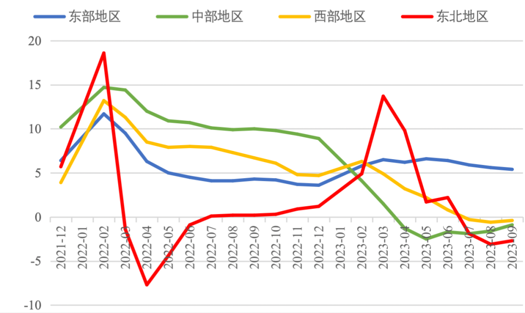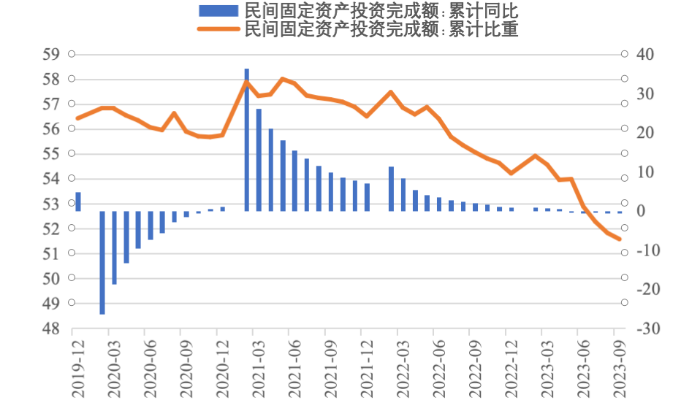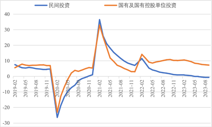 2023年前三季度,我國經(jīng)濟運行持續(xù)恢復(fù)向好,投資對優(yōu)化供給結(jié)構(gòu)的關(guān)鍵作用顯著增強,高技術(shù)產(chǎn)業(yè)投資保持較快增長,基礎(chǔ)設(shè)施投資、制造業(yè)投資穩(wěn)投資支撐作用進一步發(fā)揮。同時,當(dāng)前穩(wěn)投資也面臨新的困難挑戰(zhàn),尤其是房地產(chǎn)市場深度調(diào)整導(dǎo)致房地產(chǎn)開發(fā)投資和民間投資承受較大下行壓力。下一步仍需精準(zhǔn)有力加強逆周期調(diào)控,不斷拓展促投資政策空間,重點圍繞提振房地產(chǎn)市場、推動制造業(yè)轉(zhuǎn)型升級、激發(fā)民間投資活力等方面,繼續(xù)夯實投資復(fù)蘇基礎(chǔ)。 一、固定資產(chǎn)投資整體運行情況 (一)整體投資保持平穩(wěn)增長態(tài)勢 2023年1—9月,我國固定資產(chǎn)投資(不含農(nóng)戶,下同)375035億元,同比增長3.1%,較國內(nèi)生產(chǎn)總值增速低了2.1個百分點,較上半年增速低了0.7個百分點,固定資產(chǎn)投資增速持續(xù)放緩。從投資構(gòu)成看,上半年建安工程、設(shè)備工器具購置、其他費用分別增長2.4%、6.8%、3.1%。設(shè)備工器具購置保持較快增長,反映在各類政策工具支持引導(dǎo)下,企業(yè)設(shè)備購置、技術(shù)改造投入力度加大。 圖1 全國固定資產(chǎn)投資增速(%) 數(shù)據(jù)來源:國家統(tǒng)計局 (二)民間投資意愿和能力仍待恢復(fù) 2023年1—9月,民間固定資產(chǎn)投資為193399億元,同比下降0.6%,較上半年低了0.4個百分點,低于投資整體增速3.7個百分點。從季度波動看,民間固定資產(chǎn)投資的增速由2022年第一季度的8.4%持續(xù)下滑,并連續(xù)兩個季度負增長。民間固定資產(chǎn)投資占比進一步萎縮,跌至2011年以來的最低點,僅為51.57%。 圖2 民間投資增速及占比(%) 數(shù)據(jù)來源:國家統(tǒng)計局,Wind數(shù)據(jù)庫 國家統(tǒng)計局發(fā)布信息顯示,房地產(chǎn)投資中約80%為民間投資。受房地產(chǎn)市場深度調(diào)整影響,民間投資動力和能力相對不足,國有及國有控股單位投資增速連續(xù)20個月高于民間投資增速。2023年1—9月,國有及國有控股單位同比增長7.2%,較民間投資增速高了7.8個百分點。 圖3 民間投資、國有及國有控股單位投資增速(%) 數(shù)據(jù)來源:國家統(tǒng)計局,Wind數(shù)據(jù)庫 (三)制造業(yè)投資保持較快增長,基礎(chǔ)設(shè)施補短板投入加大 2023年1—9月,制造業(yè)和基建投資保持較快增長,房地產(chǎn)投資持續(xù)負增長,且降幅有所擴大。基礎(chǔ)設(shè)施投資在專項債等融資支持政策以及重大項目支撐下,效果持續(xù)顯現(xiàn),前三季度基礎(chǔ)設(shè)施投資同比增長8.64%,高于全部投資5.54個百分點,是三大類投資中增長最快的領(lǐng)域。其中,鐵路運輸業(yè)、倉儲業(yè)投資分別大幅增長22.1%、27.7%。截至9月底,新增地方政府專項債已發(fā)行超過3.1萬億元,完成全年專項債額度的80%以上,對基礎(chǔ)設(shè)施投資形成較強支撐。1—9月份,計劃總投資億元及以上項目投資同比增長10.2%,較1—8月快了0.3個百分點,對全部投資增長的貢獻率達169.2%,大項目投資帶動作用明顯。 數(shù)據(jù)來源:國家統(tǒng)計局,Wind數(shù)據(jù)庫 2023年1—9月,制造業(yè)投資同比增長6.2%,比整體投資高3.1個百分點。其中,高技術(shù)制造業(yè)投資同比增長11.3%,對制造業(yè)投資拉動作用明顯,表明我國制造業(yè)加速轉(zhuǎn)型升級。9月,制造業(yè)采購經(jīng)理指數(shù)(PMI)為50.2%,比上月上升0.5個百分點,重返擴張區(qū)間。生產(chǎn)指數(shù)和新訂單指數(shù)均高于臨界點,分別為52.7%和50.5%,表明制造業(yè)生產(chǎn)和市場需求穩(wěn)步回升。裝備制造業(yè)、高技術(shù)制造業(yè)PMI分別為50.6%、50.1%,均位于擴張區(qū)間。從企業(yè)規(guī)模看,大、中、小型企業(yè)PMI分別為51.6%、49.6%和48%,其中大型企業(yè)PMI較上月回升0.8個百分點,為近6個月高點,表現(xiàn)出強勁恢復(fù)發(fā)展動能。 圖4:制造業(yè)PMI指數(shù)(%) 數(shù)據(jù)來源:國家統(tǒng)計局,Wind數(shù)據(jù)庫 2023年1—9月,房地產(chǎn)開發(fā)投資增速持續(xù)放緩,房地產(chǎn)開發(fā)投資、住宅開發(fā)投資分別同比下降9.1%、8.4%。房地產(chǎn)開發(fā)投資占固定資產(chǎn)投資完成額的比重降至23.3%,較上半年下降0.8個百分點,為今年以來最低值。房屋施工面積、房屋新開工面積等先行指標(biāo)均出現(xiàn)明顯下滑,分別同比下降7.1%、23.4%。1—9月,國房景氣指數(shù)均位于100以下,自4月以來持續(xù)走低。 圖5 三大領(lǐng)域固定資產(chǎn)投資增速(累計同比,%) 數(shù)據(jù)來源:國家統(tǒng)計局,Wind數(shù)據(jù)庫 (四)東部地區(qū)投資保持較快增長,東北地區(qū)投資下滑明顯 從投資地域看,三季度東北地區(qū)投資轉(zhuǎn)為負增長,1—9月累計同比下降2.7%,較全國水平低了5.8個百分點。東部地區(qū)投資同比增長5.4%,保持較高增速。西部地區(qū)投資同比微降0.4%,增速由正轉(zhuǎn)負。中部地區(qū)投資同比下降0.9%,降幅較上半年收窄0.8個百分點。 圖6 分地區(qū)固定資產(chǎn)投資增速(累計同比,%) 數(shù)據(jù)來源:國家統(tǒng)計局,Wind數(shù)據(jù)庫 1—8月,31個省份中有15個省投資增速高于全國水平,其中西藏、上海、內(nèi)蒙古等3省實現(xiàn)兩位數(shù)增長,增速分別達42.8%、29.