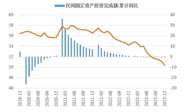 2023年,面對世界經濟復蘇乏力、國內自然災害頻發、改革發展穩定任務艱巨等多重挑戰,我國經濟回升向好,經濟轉型升級深入推進。投資對優化供給結構的關鍵作用更加凸顯,制造業投資持續向好,高技術產業投資占比穩步提高。同時,房地產投資仍未見底、民營經濟發展面臨較大壓力、地方政府債務擴展及外溢風險等突出問題制約投資持續穩定增長。做好2024年投資促進工作,需積極擴大有效益的投資,多舉措激發民間投資內生動力,全力穩定房地產投資預期,適度增加地方政府專項債券規模,加大重點領域補短板投資。 一、2023年整體投資增速有所放緩 2023年,我國固定資產投資(不含農戶)同比增長3%,增速較上年下降2.1個百分點,較前三季度、上半年、一季度分別下降0.1個、0.8個、2.1個百分點,固定資產投資增速逐季放緩。1—11月,建安工程、設備工器具購置、其他費用分別增長2.1%、6.7%、3.1%,建安工程投資增速明顯低于設備工器具購置投資增速,說明房屋、建筑物和設備裝置安裝等投資的活躍程度有所下降,體現技術水平的設備工器具投入增長加快。 圖1 全國固定資產投資增速(%) 數據來源:國家統計局 (一)民間投資動力不足。2023年,新冠疫情防控平穩轉段,疫情產生的“疤痕效應”仍待消除,需求收縮、供給沖擊、預期轉弱三重壓力尚在,民營企業面臨市場競爭加劇、利潤率下降、轉型升級難度增大、融資難融資貴等突出困難。全年民間固定資產投資253544億元,同比下降0.4%,較上年低了1.3個百分點,低于投資整體增速3.4個百分點。截至2023年12月底,我國民間固定資產投資已連續8個月負增長,民間固定資產投資占比連續7個月下降,跌至2011年以來的最低點,僅為50.4%,民間投資信心有待進一步提振。 圖2 民間投資增速及占比(%) 數據來源:國家統計局,Wind數據庫 (二)制造業投資保持較高韌性,房地產投資持續低迷。在中央預算內投資、地方政府專項債等資金的引導帶動下,基礎設施和制造業投資支撐作用更加顯著。2023年,中咨公司累計運行項目8421項,其中基礎設施投資與制造業投資項目占比近8成。我國計劃總投資億元及以上項目投資同比增長9.3%,拉動全部投資增長4.8個百分點,大項目投資帶動作用明顯。2023年,基礎設施投資同比增長8.24%,高于整體投資5.24個百分點,較2019年高了4.91個百分點。其中,鐵路運輸業投資、水利管理業投資分別增長25.2%、5.2%。制造業投資同比增長6.5%,高于整體投資增速3.5個百分點,較2019年高了3.4個百分點。制造業投資仍保持較高韌性,傳統產業高端化綠色化智能化轉型加快,電氣機械和器材制造業、汽車制造業投資分別增長32.2%、19.4%。 表1 1—12月我國各行業固定資產投資情況 數據來源:國家統計局,Wind數據庫 2023年,房地產開發投資增速持續放緩,房地產開發投資、住宅開發投資分別同比下降9.6%、9.3%。房地產開發投資占固定資產投資完成額的比重降至22%,較上年下降1.2個百分點,為3年以來最低值。房屋施工面積、房屋新開工面積等先行指標均出現明顯下滑,分別同比下降7.2%、20.4%。1—12月,國房景氣指數均位于100以下,自4月以來持續走低。 圖3 三大領域固定資產投資增速(累計同比,%) 數據來源:國家統計局,Wind數據庫 高技術產業投資引領帶動作用持續增強,集成電路、高端芯片、儀器儀表設備等領域關鍵核心技術攻關扎實推進,新能源、人工智能、生物醫藥等新興產業發展加快。2023年我國高技術產業投資增長10.3%,穩投資引領作用持續顯現。高技術制造業投資比上年增長9.9%,增速比制造業投資高3.4個百分點。其中,航空、航天器及設備制造業,計算機及辦公設備制造業,電子及通信設備制造業投資分別增長18.4%、14.5%、11.1%。高技術服務業投資比上年增長11.4%,增速比服務業投資高11個百分點。其中,科技成果轉化服務業、電子商務服務業投資分別增長31.8%、29.2%。高技術產業引資能力不斷增強,1—11月高技術產業引資3866.5億元人民幣,占全國實際使用外資總額的37.2%,較2022年全年提升1.1個百分點。 圖4 高技術產業投資增速對比整體投資增速(累計同比,%) 數據來源:國家統計局,Wind數據庫 (三)東部地區投資保持較快增長,東北地區投資延續負增長。今年以來,中咨公司承接31個省市委托的項目中,東部、中部、西部和東北地區占比分別為43%、16%、36%、5%。2023年,我國東部地區投資同比增長4.4%,較全國水平高了1.4個百分點;中部、西部地區投資增速由負轉正,分別同比增長0.3%、0.1%;東北地區投資同比下降1.8%,降幅較前三季度有所收窄。 圖5 分地區固定資產投資增速(累計同比,%) 數據來源:國家統計局,Wind數據庫 2023年1—11月,31個省份中有15個省投資增速高于全國水平,其中西藏、內蒙古、上海等3省市,因投資恢復動力較強或上年同期基數效應等,投資增速超過15%。天津、山西、黑龍江、江西、湖南、廣西、貴州、云南、陜西、青海等10省份,投資出現負增長,其中天津、黑龍江、廣西、云南降幅最大,分別同比下降17.8%、16.3%、14.9%、10.3%。 表2 1—11月全國各省固定資產投資情況 數據來源:國家統計局,Wind數據庫 二、面臨的主要問題及挑戰 (一)房地產供求關系深度調整從根本上制約著房地產投資的增長。2023年初,隨著疫情防控平穩轉段后的積壓需求較快釋放,我國房地產銷售出現一些積極變化;但在房地產市場供求關系發生重大變化的背景下,前期積壓的