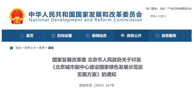 展首都綠色之翼 創(chuàng)全國示范之先 高質量建設國家綠色發(fā)展示范區(qū) ——《北京城市副中心建設國家綠色發(fā)展示范區(qū)實施方案》解讀 張英健 木其堅 近日,經(jīng)國務院同意,國家發(fā)展改革委、北京市人民政府聯(lián)合印發(fā)《北京城市副中心建設國家綠色發(fā)展示范區(qū)實施方案》(發(fā)改環(huán)資〔2024〕241號,以下簡稱《實施方案》),明確了北京城市副中心綠色高質量發(fā)展、打造人與自然和諧共生樣板的工作路徑,為北京城市副中心有序承接中心城區(qū)非首都功能疏解、推進首都城市功能重組和布局優(yōu)化,建設和諧、宜居、美麗的綠色發(fā)展高地繪制了總體藍圖,對于推動北京“新兩翼”建設取得更大突破,促進京津冀協(xié)同發(fā)展具有重要而深遠的意義。 1、踐行習近平生態(tài)文明思想是北京城市副中心建設的根本遵循 規(guī)劃建設北京城市副中心,與雄安新區(qū)形成北京的“新兩翼”,是以習近平同志為核心的黨中央作出的重大決策部署,是千年大計、國家大事。早在2016年北京城市副中心研究部署規(guī)劃階段,習近平總書記就強調,北京城市副中心建設要牢固樹立并貫徹落實創(chuàng)新、協(xié)調、綠色、開放、共享的發(fā)展理念,構建藍綠交織、清新明亮、水城共融的生態(tài)城市布局,著力打造國際一流和諧宜居之都示范區(qū),建成綠色城市、森林城市、海綿城市、智慧城市。2021年8月,國務院印發(fā)《關于支持北京城市副中心高質量發(fā)展的意見》,明確提出在北京城市副中心建設國家綠色發(fā)展示范區(qū),堅持將綠色發(fā)展理念融入經(jīng)濟社會發(fā)展全過程。近年來,京津冀3省市切實履行主體責任,中央有關部門和單位大力支持配合,疏解北京非首都功能初見成效,北京城市副中心高質量發(fā)展步伐加快,“軌道上的京津冀”加速形成,北京城市副中心美麗宜居水平大幅提升,科技創(chuàng)新和產(chǎn)業(yè)融合發(fā)展水平持續(xù)提升,人民群眾獲得感顯著增強。實踐證明,黨中央關于北京城市副中心的安排部署,特別是堅持將綠色發(fā)展作為城市發(fā)展底色的決策部署科學合理、順應民心,符合我國新時代高質量發(fā)展需要。 北京城市副中心肩負著有序承接中心城區(qū)非首都功能疏解、推進首都城市功能重組和布局優(yōu)化、探索人口經(jīng)濟密集地區(qū)優(yōu)化開發(fā)模式的艱巨任務。與雄安平地建新城不同,北京城市副中心本身已有城市建設的基礎,如何在既有基礎上脫胎換骨、綠色升級,打造一個不一樣的和諧宜居之城,關鍵是必須牢牢把握住習近平生態(tài)文明思想這個最核心的思想武器。《實施方案》認真貫徹黨中央、國務院決策部署,時時處處踐行綠水青山就是金山銀山理念,牢固樹立節(jié)約集約循環(huán)利用的資源觀,以實現(xiàn)碳達峰碳中和目標為引領,將綠色發(fā)展理念融入北京城市副中心經(jīng)濟社會發(fā)展各領域全過程,協(xié)同推進降碳、減污、擴綠、增長,擘畫了北京城市副中心的發(fā)展藍圖,描繪了青山常在、綠水長流、空氣常新的美麗畫卷,印發(fā)后必將成為北京城市副中心綠色高質量發(fā)展的重要指南。 2、做好北京城市副中心綠色發(fā)展六篇示范文章 北京城市副中心建設國家綠色發(fā)展示范區(qū),不是戴帽子、做盆景,是要真正解題破題,探索既有建成區(qū)綠色低碳升級的可行路徑,從而為首都乃至全國各個地區(qū)提供可推廣、可復制的經(jīng)驗。《實施方案》明確,將聚焦建筑、交通、產(chǎn)業(yè)三大關鍵領域和能源、生態(tài)、文化三大重點支撐開展綠色示范,統(tǒng)籌產(chǎn)業(yè)結構調整、污染治理、生態(tài)保護、應對氣候變化,協(xié)同推進降碳、減污、擴綠、增長,推動北京城市副中心經(jīng)濟社會各方面和全過程綠色低碳發(fā)展。綠色建筑示范方面,統(tǒng)籌考慮新建建筑建造、既有建筑改造和智能建造應用,推進實施工程建設全過程綠色建造,大力推行綠色建筑和超低能耗建筑,加大智能建造應用力度,推動建筑領域全過程節(jié)約資源和減少碳排放,實現(xiàn)建筑領域綠色化、品質化發(fā)展和數(shù)字化、智能化升級。綠色交通示范方面,建設高效綠色的軌道交通,完善生態(tài)友好的道路交通,推進綠色智能交通管理,推動區(qū)域綠色低碳交通一體化,構建承載輻射功能突出、便捷暢達、人本生態(tài)的現(xiàn)代綜合交通體系,為北京城市副中心與河北省三河市、大廠回族自治縣、香河縣一體化高質量發(fā)展提供重要支撐。綠色產(chǎn)業(yè)示范方面,推進數(shù)字化智能化綠色化融合發(fā)展,著力提升產(chǎn)業(yè)綠色化發(fā)展水平,強化綠色金融商務服務功能,推進文化旅游商務融合發(fā)展,加強綠色產(chǎn)業(yè)國際國內交流與合作,在落實碳達峰碳中和目標任務過程中鍛造新的產(chǎn)業(yè)競爭優(yōu)勢。綠色能源示范方面,完善能源消耗強度和總量調控,全面提升能源利用效率,大力發(fā)展可再生能源和余熱利用,積極拓展綠色電力應用,大力推廣應用先進能源技術,全面建立安全可靠、綠色低碳的能源體系。綠色生態(tài)示范方面,建設水城共融的生態(tài)城市,建成藍綠交織的森林空間,持續(xù)抓好空氣污染治理,加強噪聲污染綜合防治,加強韌性