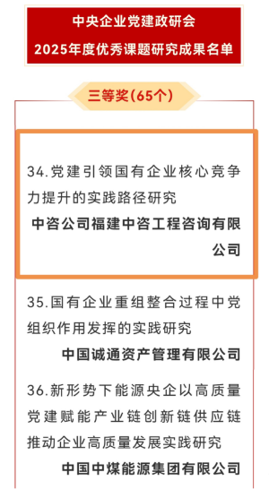 喜訊!中咨公司研究課題榮獲中央企業黨建政研會2025年度優秀課題研究成果三等獎