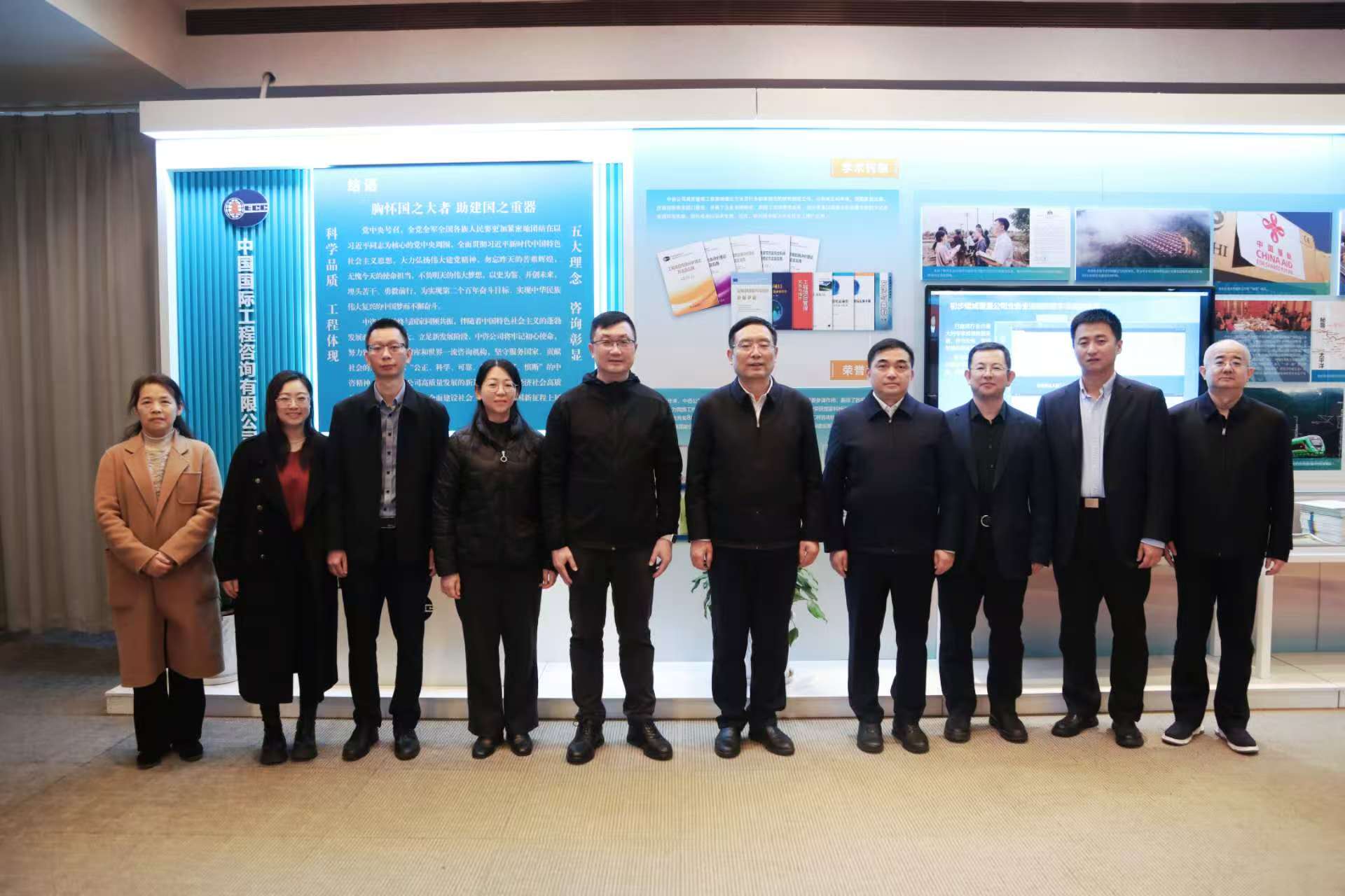 座談會前,劉展翔一行觀看中咨公司宣傳片,參觀公司高端智庫建設成果展。