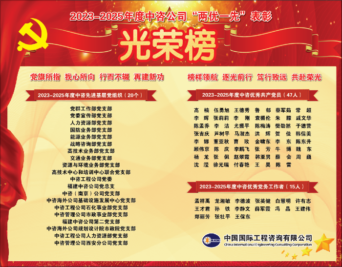 6月30日,中咨公司隆重召開(kāi)慶祝中國(guó)共產(chǎn)黨成立104周年暨“七一”表彰大會(huì),對(duì)過(guò)去兩年在推進(jìn)公司黨的建設(shè)和改革發(fā)展進(jìn)程中涌現(xiàn)的先進(jìn)典型進(jìn)行表彰,進(jìn)一步激勵(lì)各級(jí)黨組織和廣大黨員不忘初心、牢記使命,為公司加快建設(shè)國(guó)家高端智庫(kù)和世界一流咨詢機(jī)構(gòu)作出新的更大貢獻(xiàn)。 公司黨委副書(shū)記、董事、總經(jīng)理郭銘群出席會(huì)議并講話,受公司黨委書(shū)記、董事長(zhǎng)茍護(hù)生委托,代表公司黨委,向受到表彰的先進(jìn)集體和個(gè)人表示誠(chéng)摯的祝賀、向奮戰(zhàn)在公司各條戰(zhàn)線的廣大黨員干部職工致以節(jié)日的問(wèn)候,并對(duì)各級(jí)黨組織和黨員同志提出要求和期待。會(huì)議由公司黨委副書(shū)記、工會(huì)主席朱嵐主持,黨委委員、總會(huì)計(jì)師王麗靜宣讀公司黨委關(guān)于表彰2023—2025年度“兩優(yōu)一先”的決定,公司領(lǐng)導(dǎo)潘小海、沈浩、劉富榮、李開(kāi)孟參加會(huì)議。 郭銘群在講話中指出,公司各級(jí)黨組織和廣大黨員干部職工堅(jiān)持以習(xí)近平新時(shí)代中國(guó)特色社會(huì)主義思想為指導(dǎo),以開(kāi)展深入貫徹中央八項(xiàng)規(guī)定精神學(xué)習(xí)教育為動(dòng)力,聚焦主責(zé)主業(yè)、把準(zhǔn)功能定位,為黨和國(guó)家有關(guān)重大戰(zhàn)略、重大規(guī)劃、重大工程和重大投資政策實(shí)施提供了重要智力支撐,并在實(shí)踐中深刻認(rèn)識(shí)到:必須始終把黨的事業(yè)放在心中最高位置,把“兩個(gè)維護(hù)”印刻在腦海里、落實(shí)到行動(dòng)上,牢記“黨之大計(jì)”、胸懷“國(guó)之大者”、助建“國(guó)之重器”,以更高站位、更高水平、更高質(zhì)量服務(wù)黨和國(guó)家科學(xué)決策。 郭銘群強(qiáng)調(diào),公司各級(jí)黨組織要扛起主體責(zé)任,鍛造堅(jiān)強(qiáng)堡壘,全體黨員要以黨性立“智”、以清風(fēng)潤(rùn)“咨”,進(jìn)一步堅(jiān)定發(fā)展信心、保持發(fā)展定力、搶抓發(fā)展機(jī)遇,齊心協(xié)力譜寫(xiě)公司高質(zhì)量發(fā)展新篇章。銳意改革攻堅(jiān)、埋頭苦干實(shí)干,不折不扣落實(shí)公司“五五戰(zhàn)略”和“3510”策略,以破解發(fā)展難題、提升管理效能、防范化解風(fēng)險(xiǎn)的擔(dān)當(dāng)和作為彰顯黨性;堅(jiān)持從群眾中來(lái)、到群眾中去,著力解決職工急難愁盼問(wèn)題,在開(kāi)展政策研究和咨詢服務(wù)過(guò)程中站穩(wěn)人民立場(chǎng),以用心用情辦實(shí)事的行動(dòng)和成效彰顯黨性;從嚴(yán)從實(shí)加強(qiáng)作風(fēng)建設(shè),以開(kāi)展深入貫徹中央八項(xiàng)規(guī)定精神學(xué)習(xí)教育為契機(jī),不斷提高拒腐防變能力,永葆黨員政治本色,在共同營(yíng)造風(fēng)清氣正干事創(chuàng)業(yè)良好政治生態(tài)中彰顯黨性。 大會(huì)共表彰了20個(gè)“先進(jìn)基層黨組織”、47名“優(yōu)秀共產(chǎn)黨員”和15名“優(yōu)秀黨務(wù)工作者”。公司領(lǐng)導(dǎo)為受表彰的先進(jìn)集體和個(gè)人頒獎(jiǎng)。能源業(yè)務(wù)部李德波、中咨工程公司牛博、中咨海外公司蘇寶健代表獲獎(jiǎng)集體和個(gè)人作交流發(fā)言。 朱嵐在主持講話中指出,公司全體黨員要以先進(jìn)為標(biāo)桿,以典型為榜樣,弘揚(yáng)偉大建黨精神,進(jìn)一步提高政治站位、強(qiáng)化政治擔(dān)當(dāng),堅(jiān)定奮斗意志、堅(jiān)定恒心韌勁,永遠(yuǎn)保持共產(chǎn)黨員的激情和榮耀,攻堅(jiān)克難完成年度各項(xiàng)目標(biāo)任務(wù),以實(shí)干實(shí)績(jī)?yōu)辄h旗增光添彩。 會(huì)議采取線上線下相結(jié)合的方式召開(kāi)。公司總部部門(mén)副職及以上管理人員和相應(yīng)層級(jí)專(zhuān)業(yè)職級(jí)人員、在京所屬企業(yè)班子成員和獲獎(jiǎng)代表在現(xiàn)場(chǎng)參會(huì)。公司總部處級(jí)干部和相應(yīng)職級(jí)人員、京外所屬企業(yè)班子成員以及各所屬企業(yè)黨員代表線上參會(huì)。 | |||||